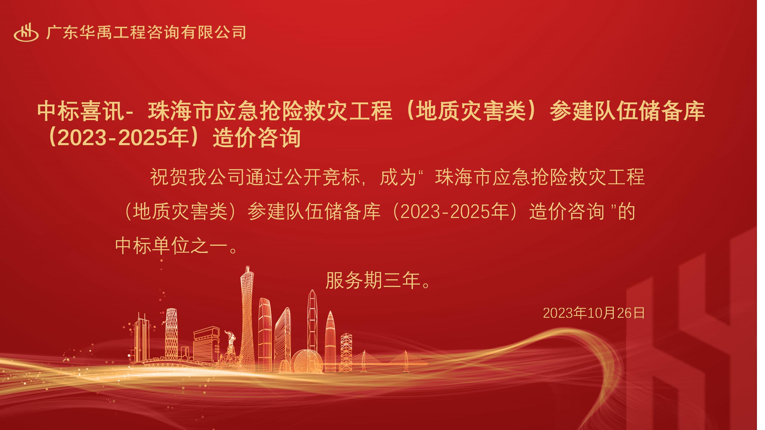 中标喜讯 - 珠海市应急抢险救灾工程(地质灾害类)参建队伍储备库(2023-2025年)造价咨询