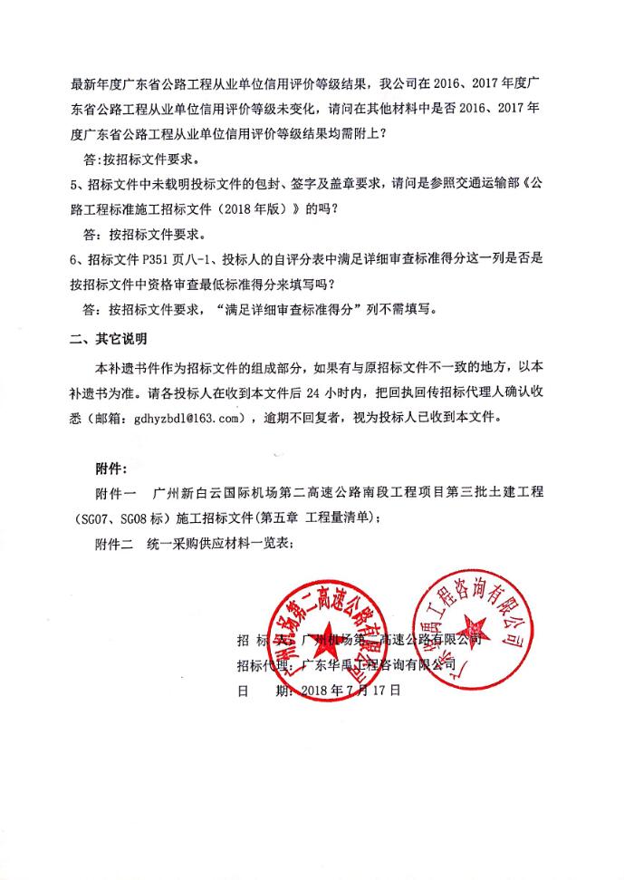 下一篇:补遗书 - 广州新白云国际机场第二高速公路南段工程项目第三批土建工程(SGG07、SG08标)施工招标招标文件补遗书(第01号)