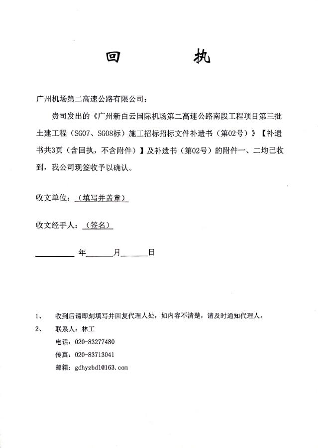补遗书 - 广州新白云机场第二高速南段工程项目第三批土建工程(SG07、SG08标)施工招标招标文件补遗书(第02号)