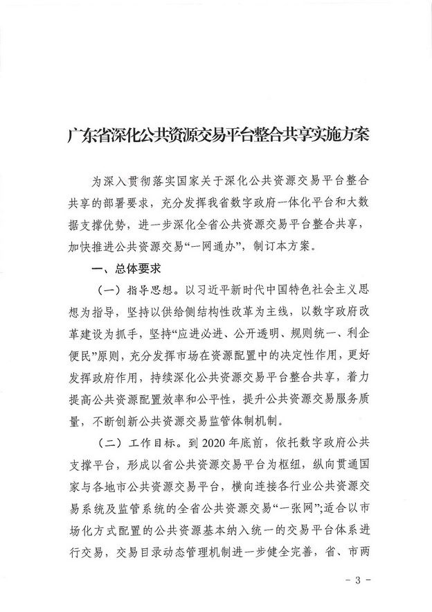 关于印发《广东省深化公共资源交易平台整合共享实施方案》的通知
